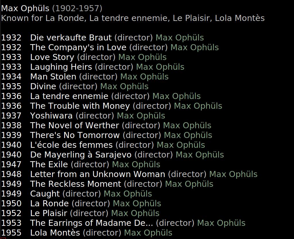 I’ve seen very few movies by Ophüls… The Earrings of Madame De…? Yes. Possibly no other movies?
