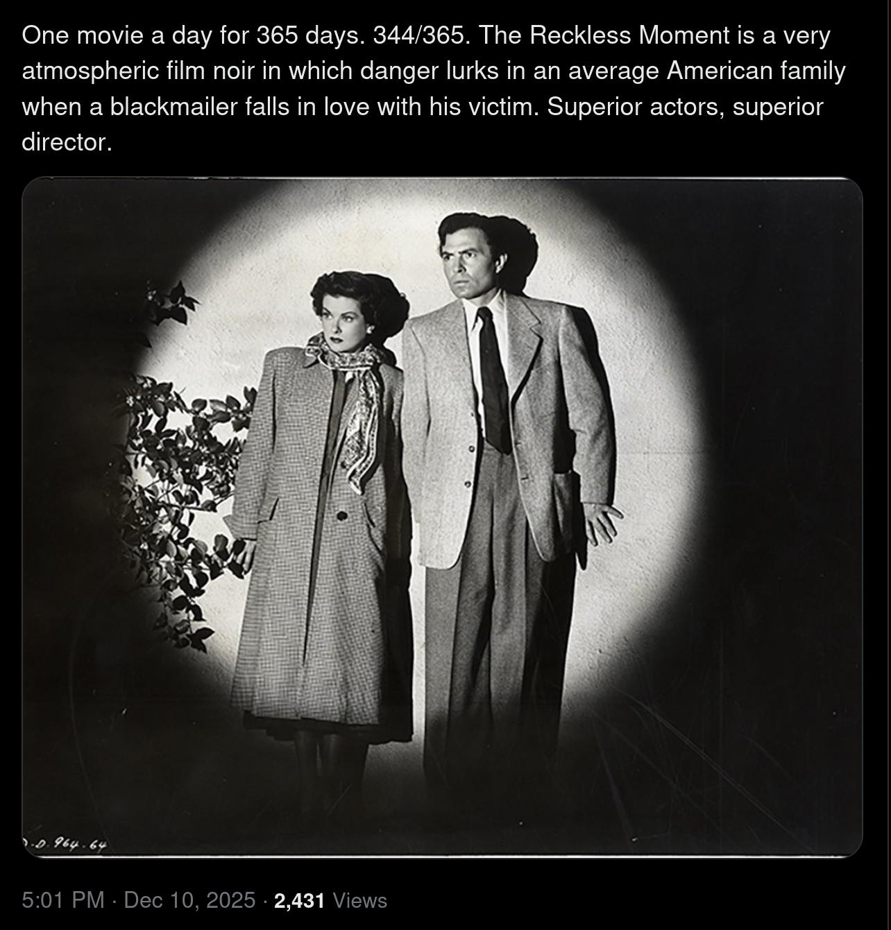 The Reckless Moment. Max Ophüls. 1949. ⚅